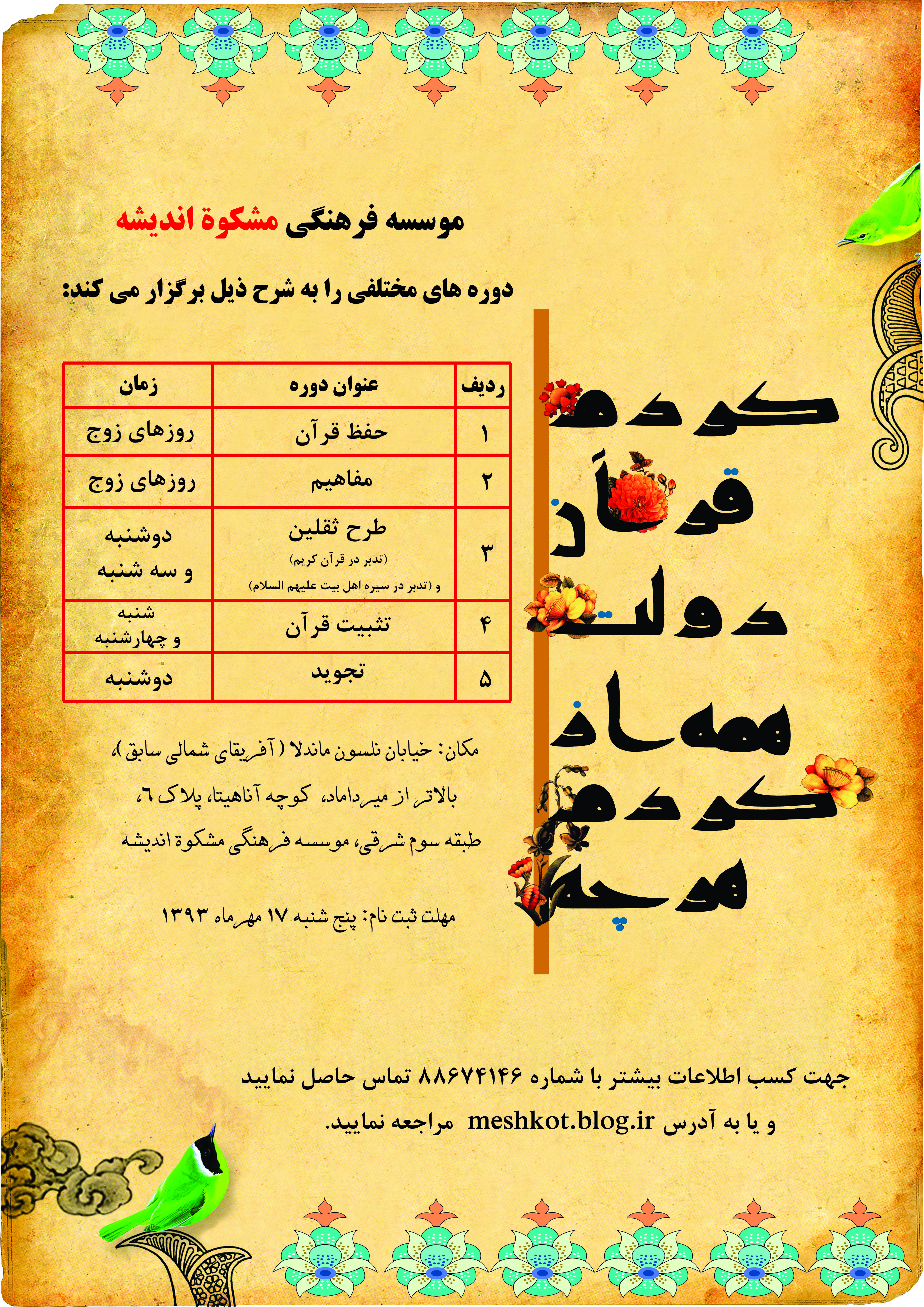 هوالمستعان قدم گذاشتن در راه تبین معارف قرآنی و اهلبیت عصمت و طهارت علیهم السلام، توفیقی است که خاص برگزیدگان خداوند است. ضمن عرض تبریک امیدواریم با عنایت خداوند متعال و توجهات حضرات معصومین علیهم السلام در این راه موفق باشید. اجرکم عندالله